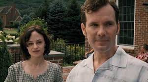 Even in this initial scene, we get a sense of Chris Cleek's dominance over his wife. Although he never says anything that horrendous to her, he never makes eye contact with her, and talks to her as if she is a servant and a lower being than him. He also flicks the switch and becomes, relatively, charming when talking to a widower. Yet you get the underlying suspicion that whilst he pretends to care, he is going to take this woman for all she is worth and exploit her.